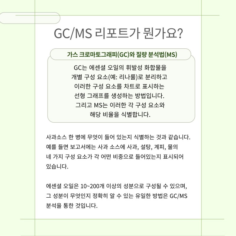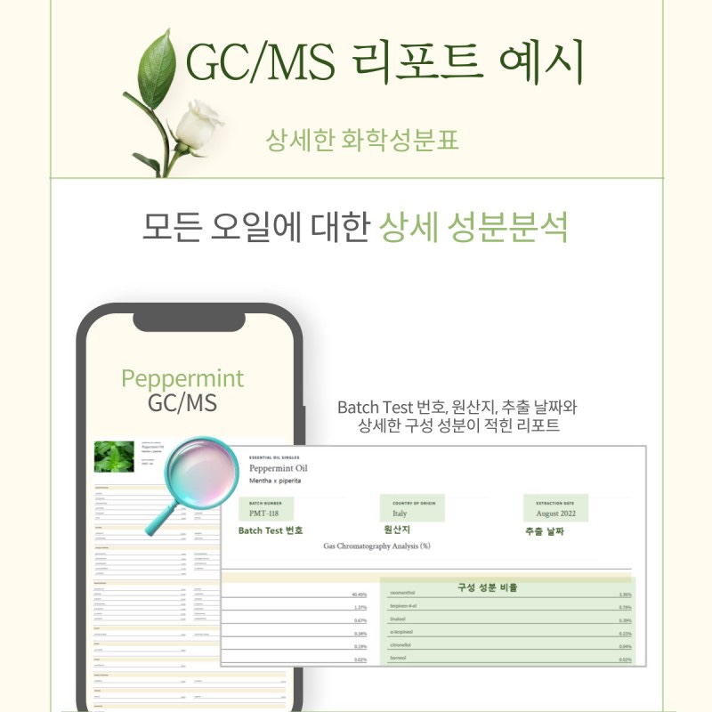 GC/MS 테스트(구성성분표)를 제공해주지 않아